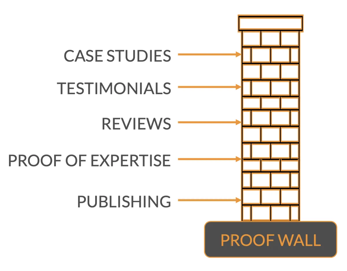 Creating an abundance of proof in the form of a 'Proof Wall' that includes Case Studies, Testimonials, Reviews, Proof Of Expertise and Publishing, all combine to provide undeniable proof that you can deliver on your promises.